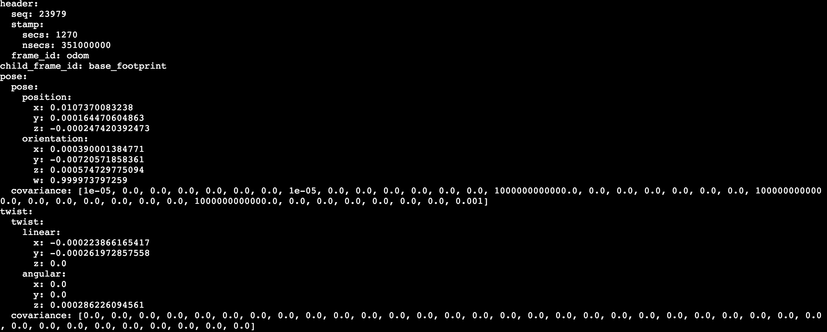 # print(msg.pose) # #This will print the pose section of the Odometry message
