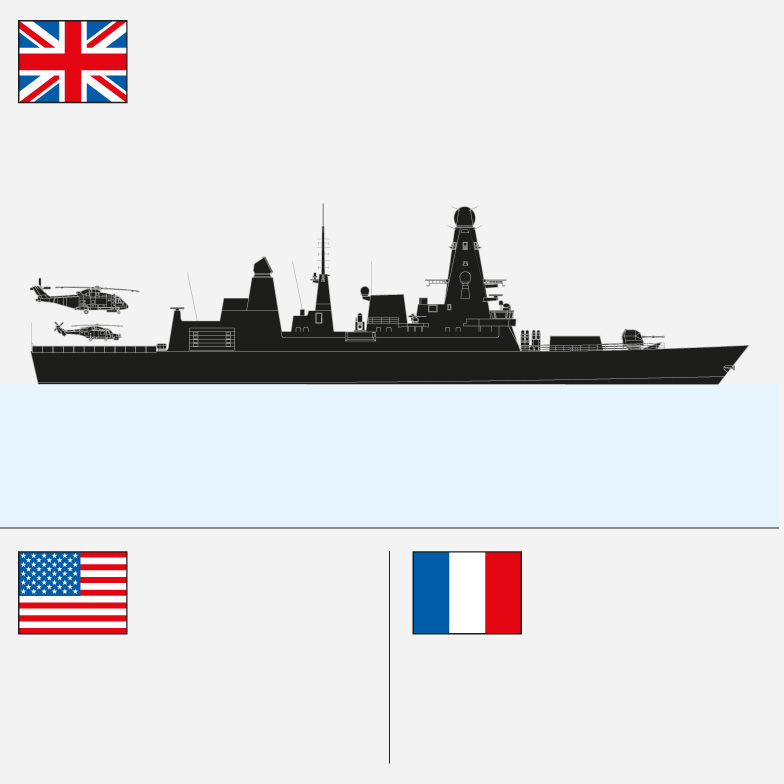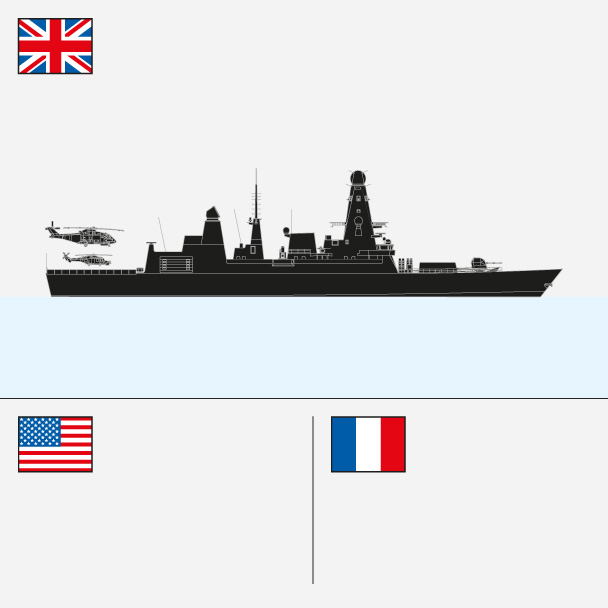 HMS Diamond deployed. The warship, a Type 45 Destroyer, is one of the Royal Navy’s most advanced. It is equipped with a 48-cell launcher for surface-to-air missiles
