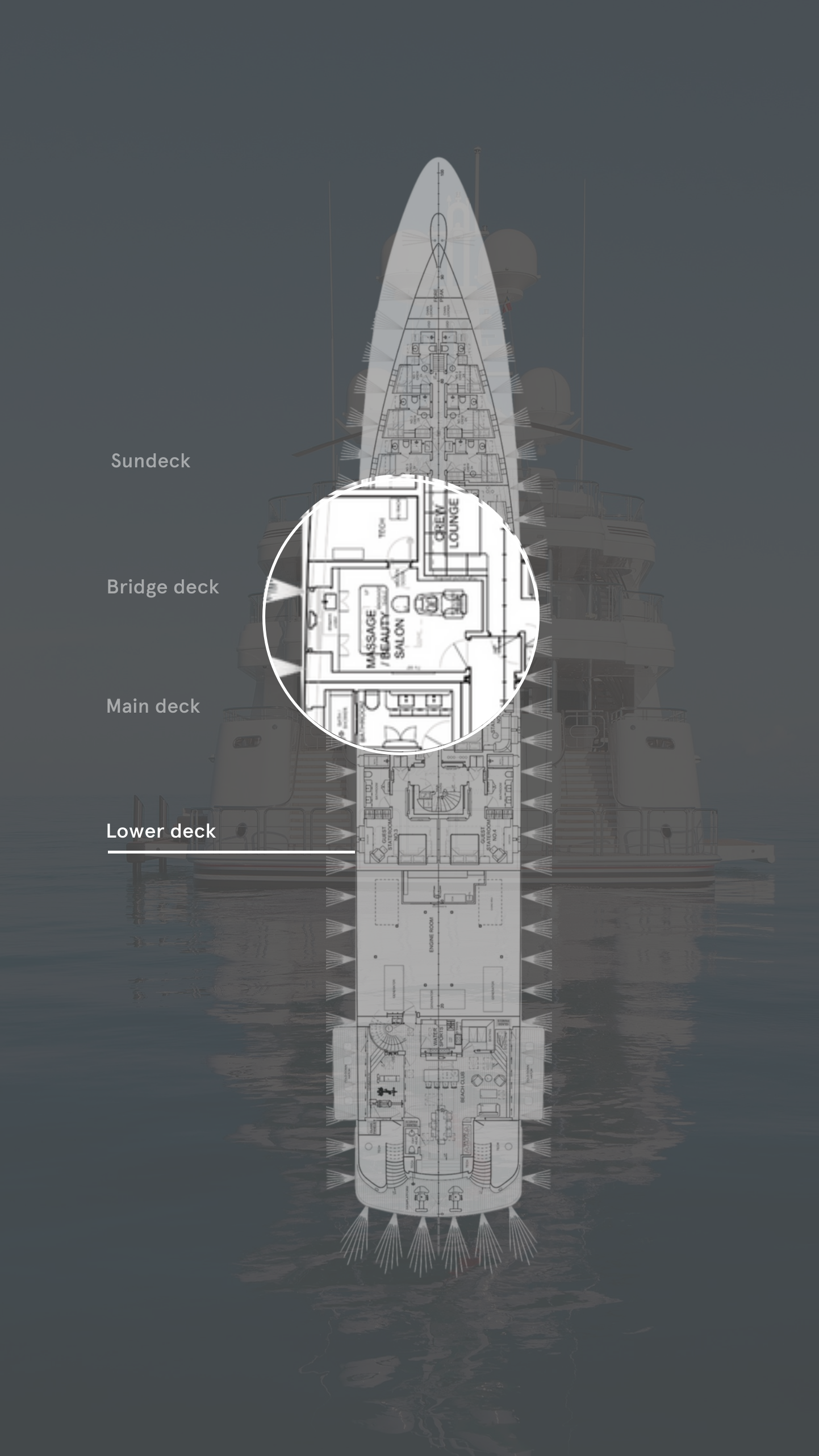 Lighting is a very important feature on this yacht, as it was on his previous one. His Westport 164 had four times as many lights as others in the series. His Feadship has many more still, carefully studied and placed to create a mood, set the yacht aglow at dusk, accentuate features such as design details and artwork on the interior, as well as to guide people at night.